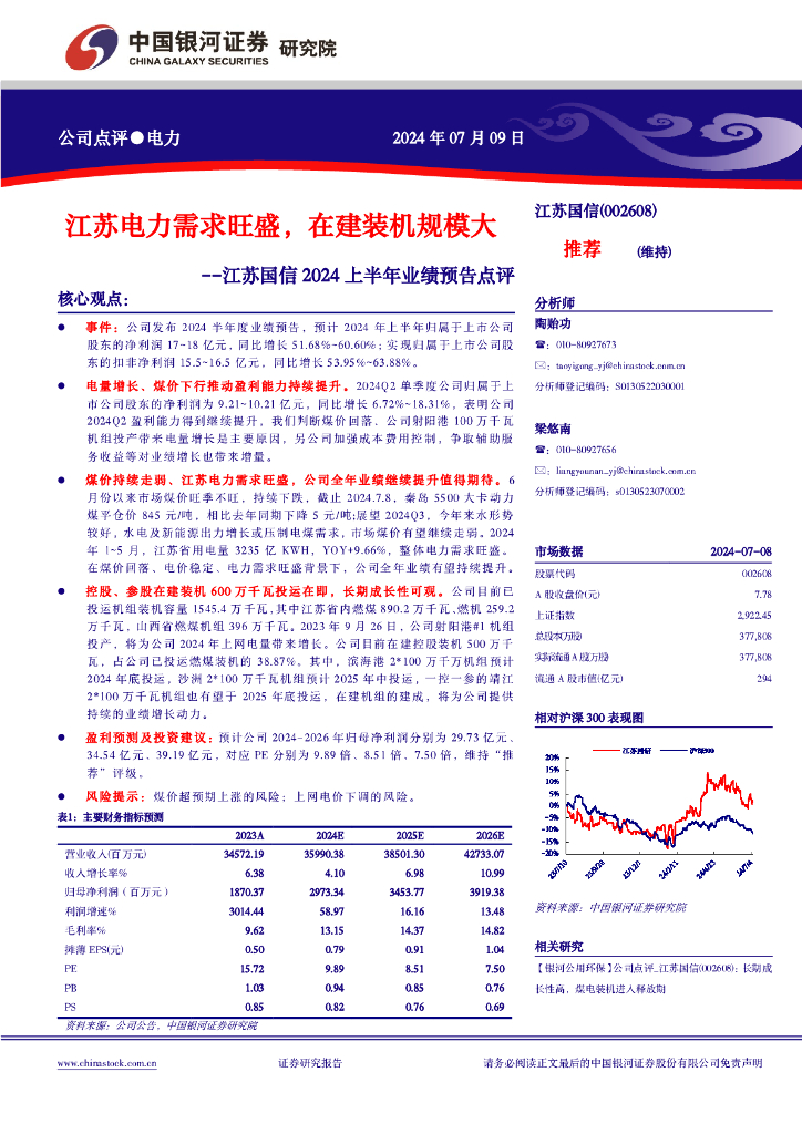 中国银河:江苏国信2024上半年业绩预告点评:江苏电力需求旺盛,在建装机规模大.pdf