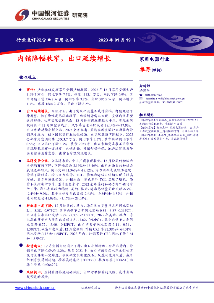 中国银河:家用电器行业点评报告:内销降幅收窄,出口延续增长.pdf