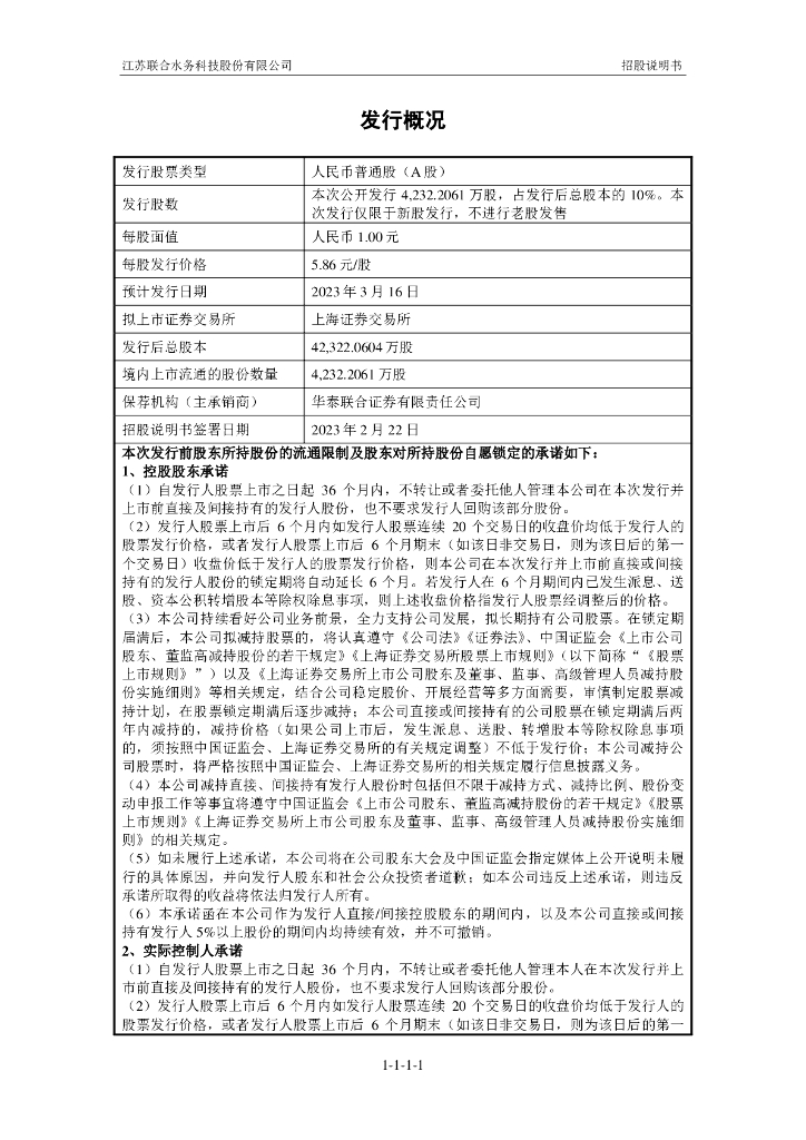 江苏联合水务科技沪主板IPO上市招股说明书.pdf