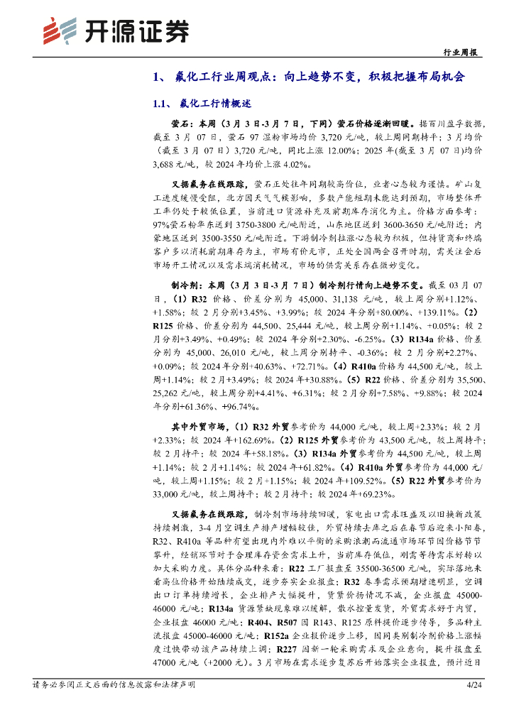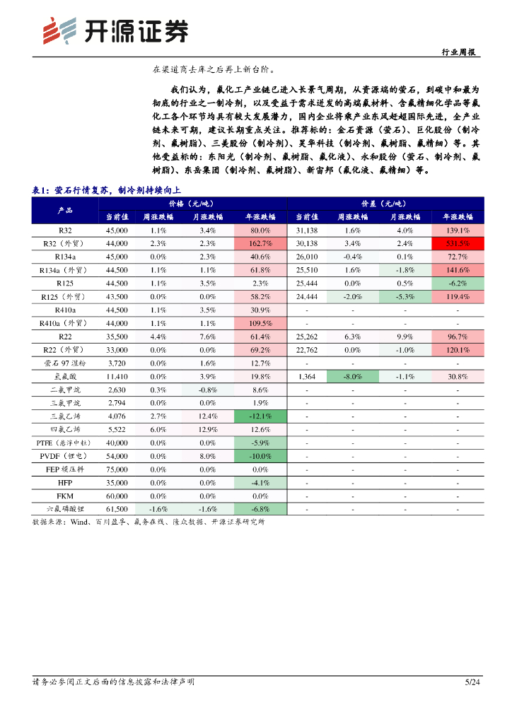 开源证券:氟化工行业周报:萤石、制冷剂向上趋势不变,积极把握布局机会.pdf