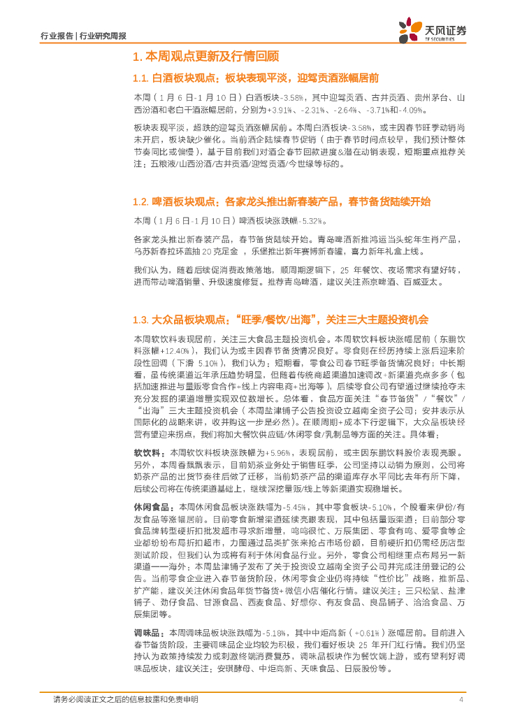 天风证券:食品饮料行业周报:软饮短期表现居前,关注旺季白酒动销&发货.pdf