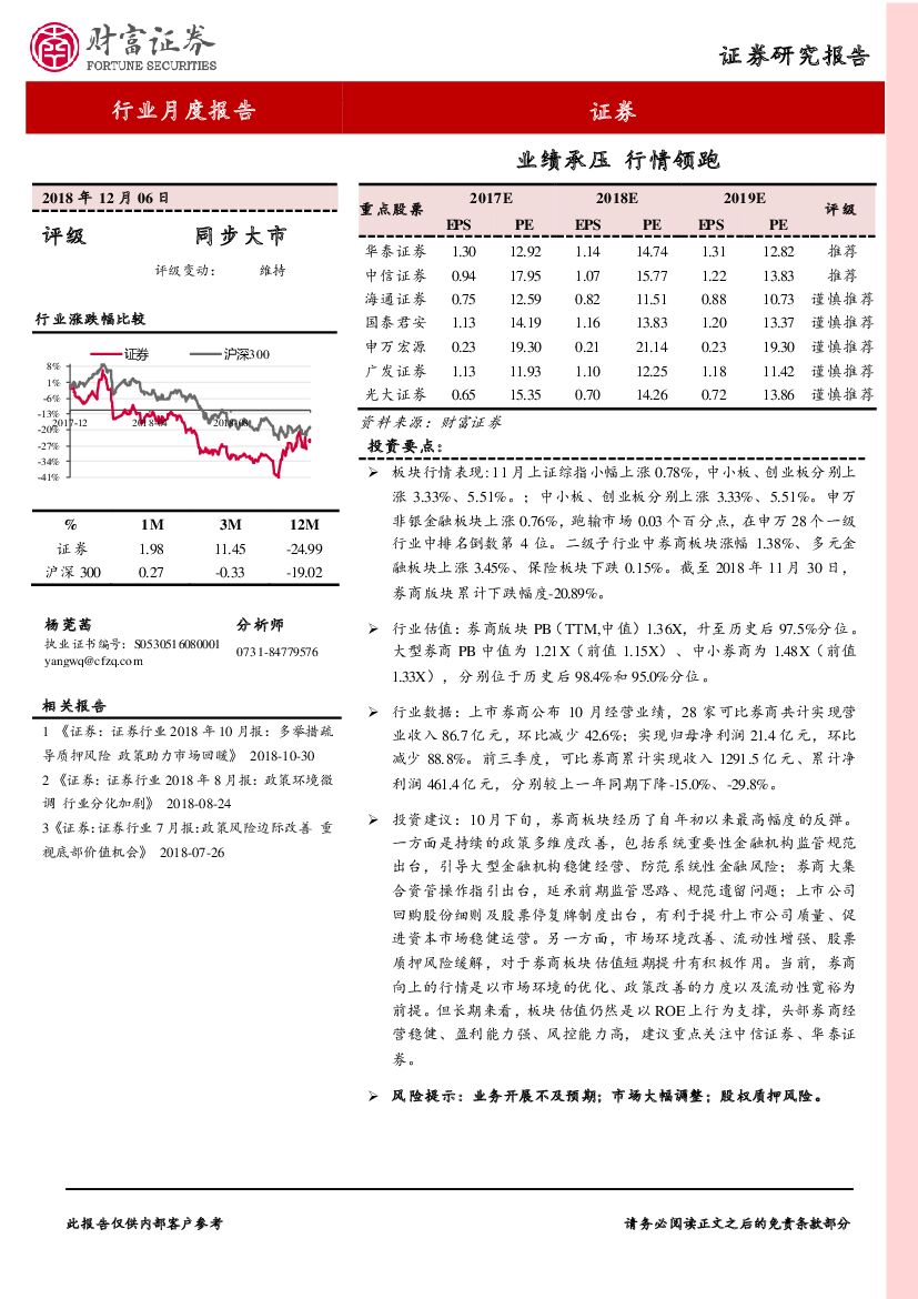 财富证券:证券行业月度报告:业绩承压 行情领跑.pdf