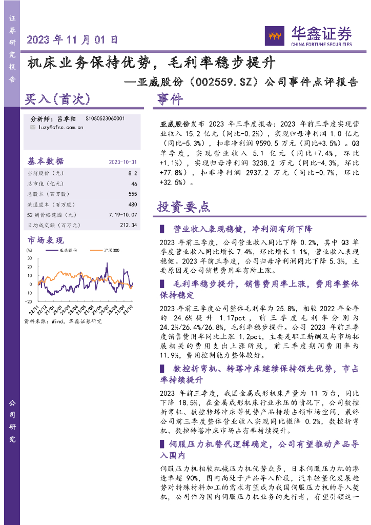 华鑫证券:亚威股份(002559)-公司事件点评报告:机床业务保持优势,毛利率稳步提升.pdf