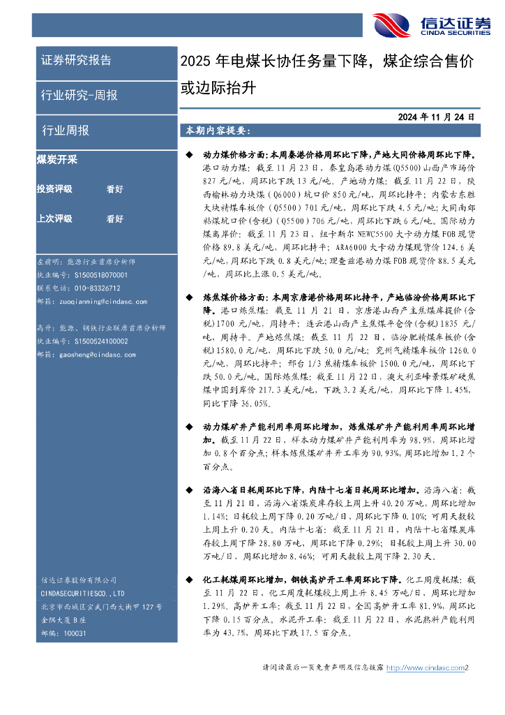 信达证券:2025年电煤长协任务量下降,煤企综合售价或边际抬升.pdf