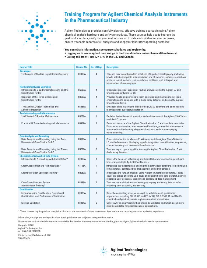 Agilent Training Program for Agilent Chemical Analysis Instruments in the Pharmaceutical Industry 数据手册.pdf