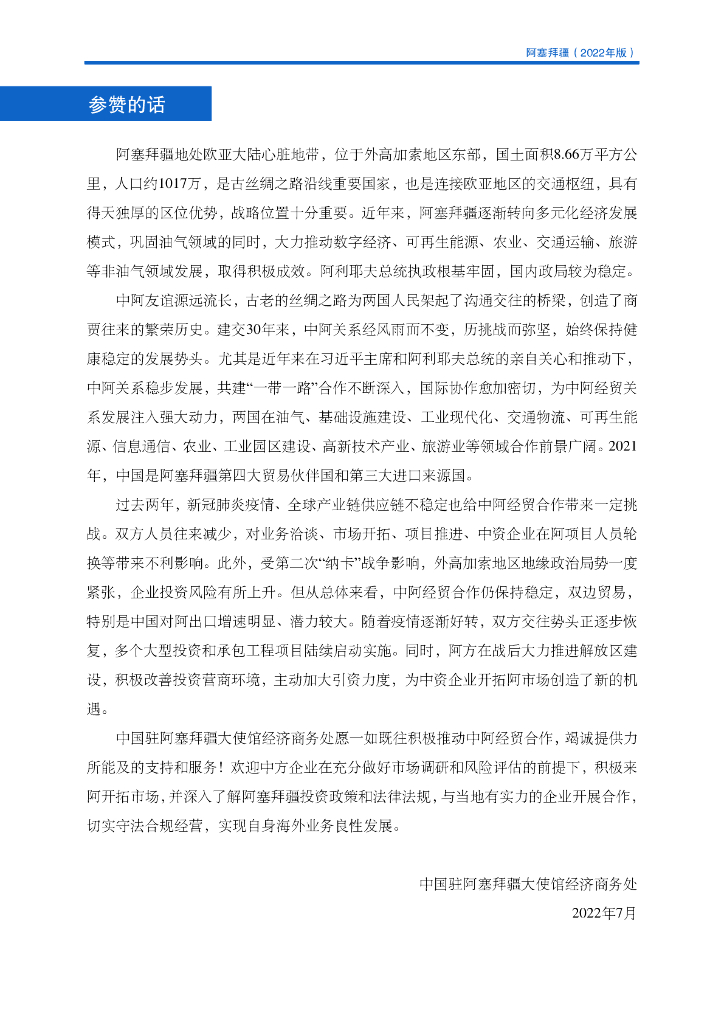 商务部:对外投资合作国别(地区)指南:阿塞拜疆(2022年版).pdf