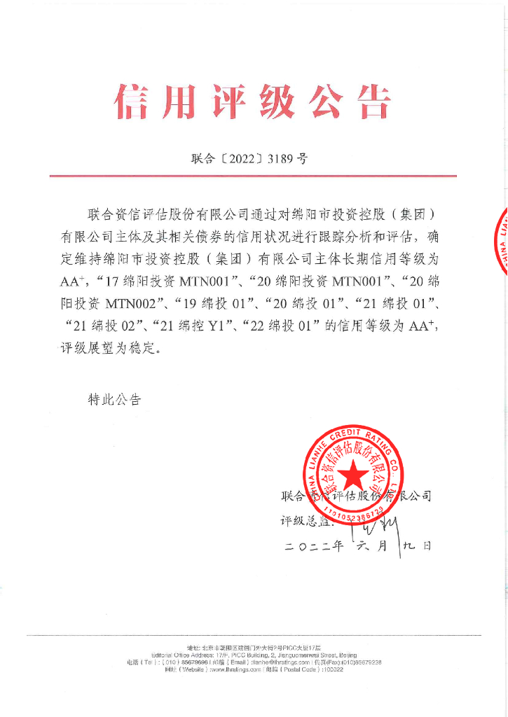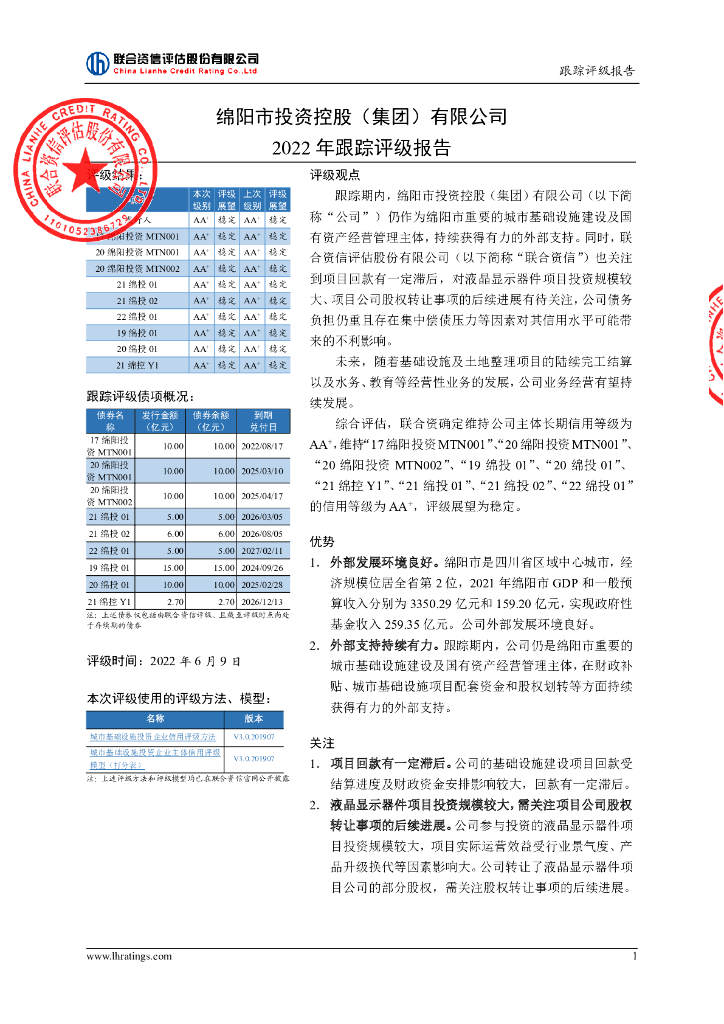 联合资信:绵阳市投资控股(集团)有限公司2022年跟踪评级报告.pdf