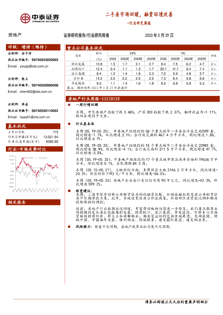中泰证券:房地产行业研究周报:二手房市场回暖,融资环境改善.pdf
