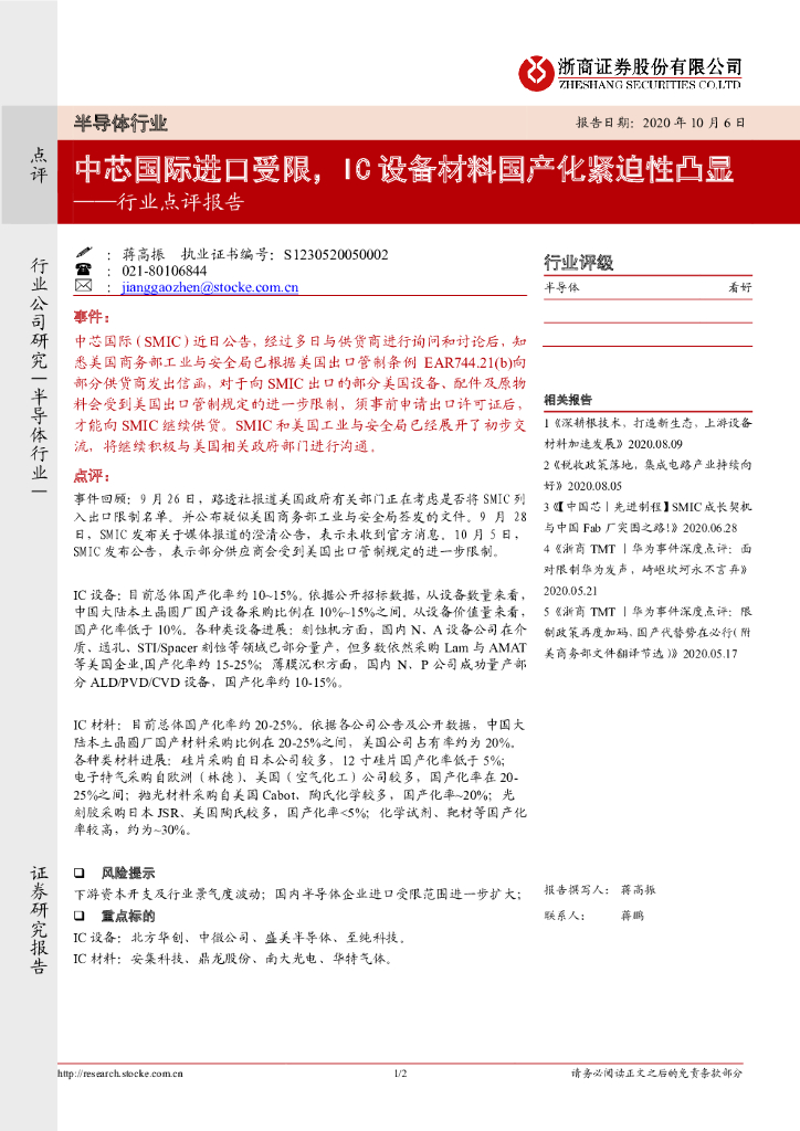 浙商证券:半导体行业点评报告:中芯国际进口受限,IC设备材料国产化紧迫性凸显.pdf