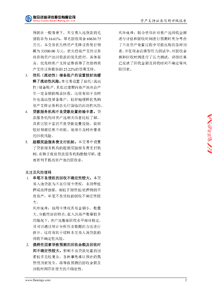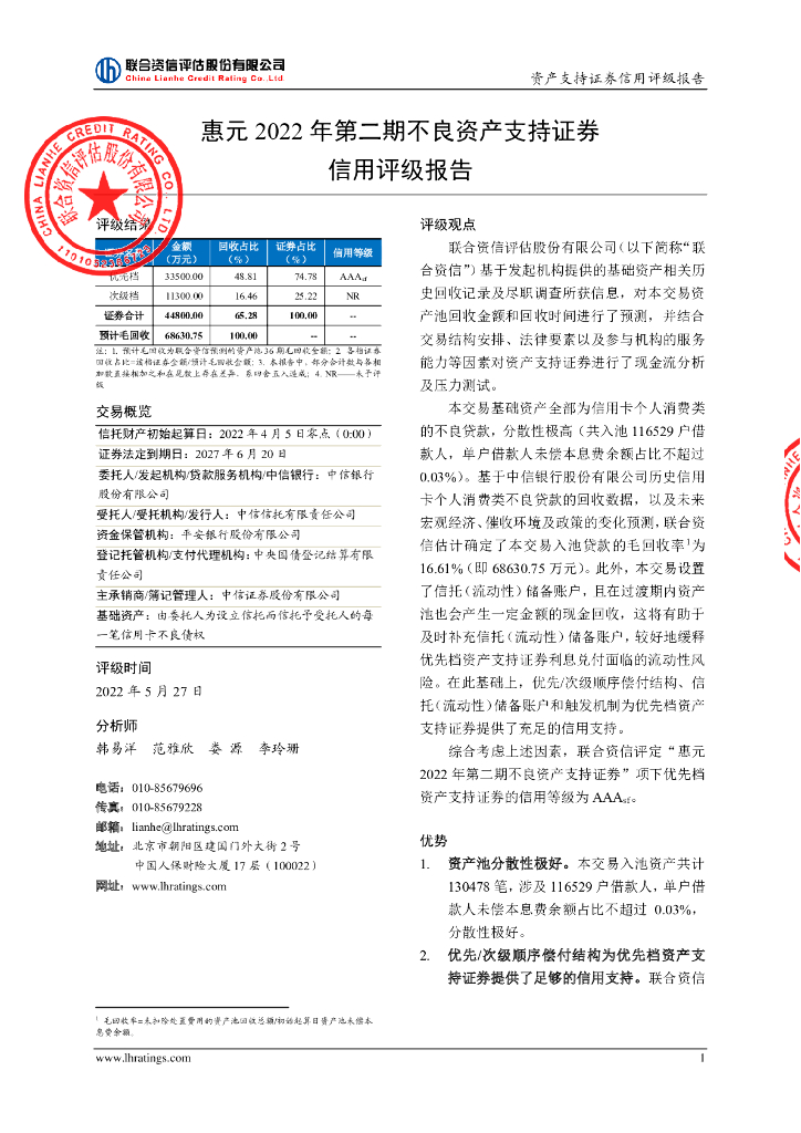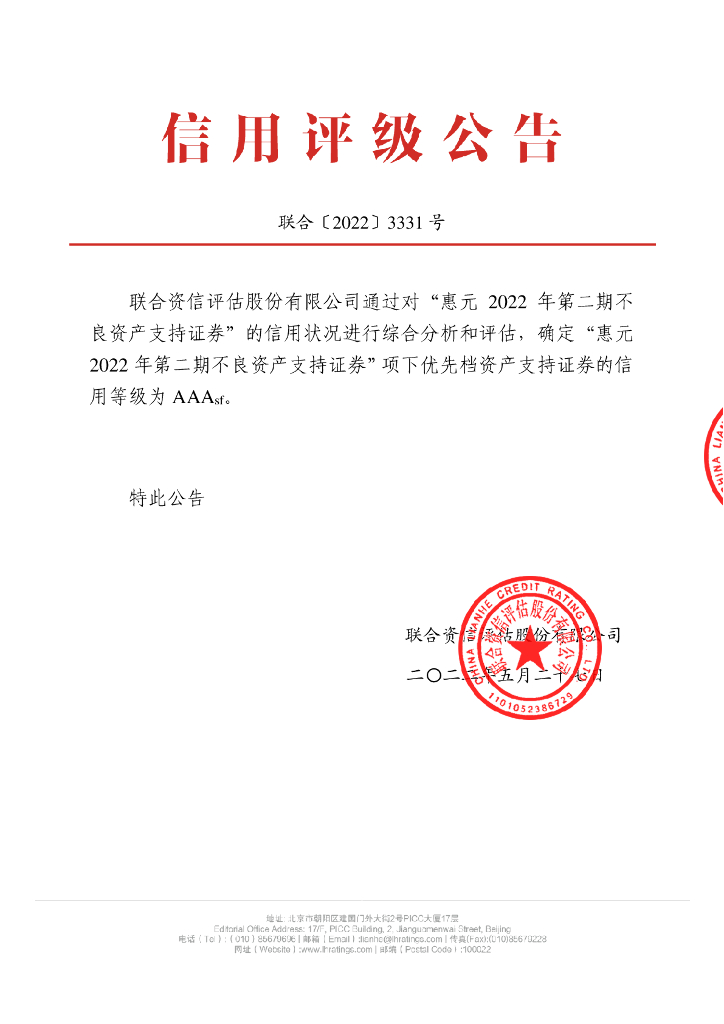 联合资信:惠元2022年第二期不良资产支持证券联合资信售前评级报告及跟踪评级安排.pdf