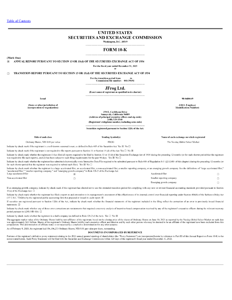 JFrog Ltd.(FROG)2023财年年度报告(英文版).pdf