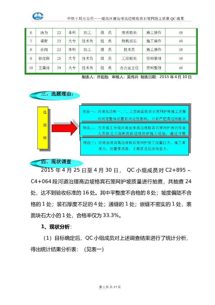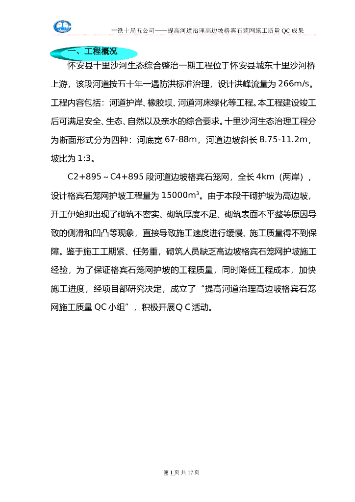 河道治理高边坡格宾石笼网施工QC成果.doc
