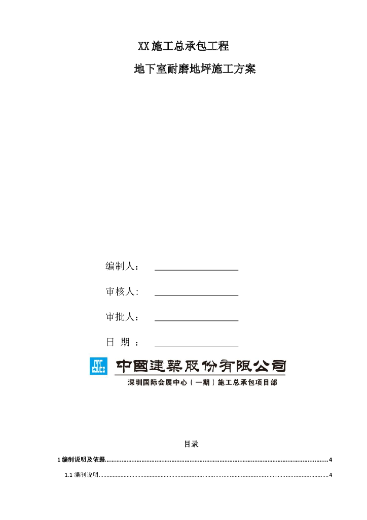 [深圳]中建地下室耐磨地坪施工方案.doc