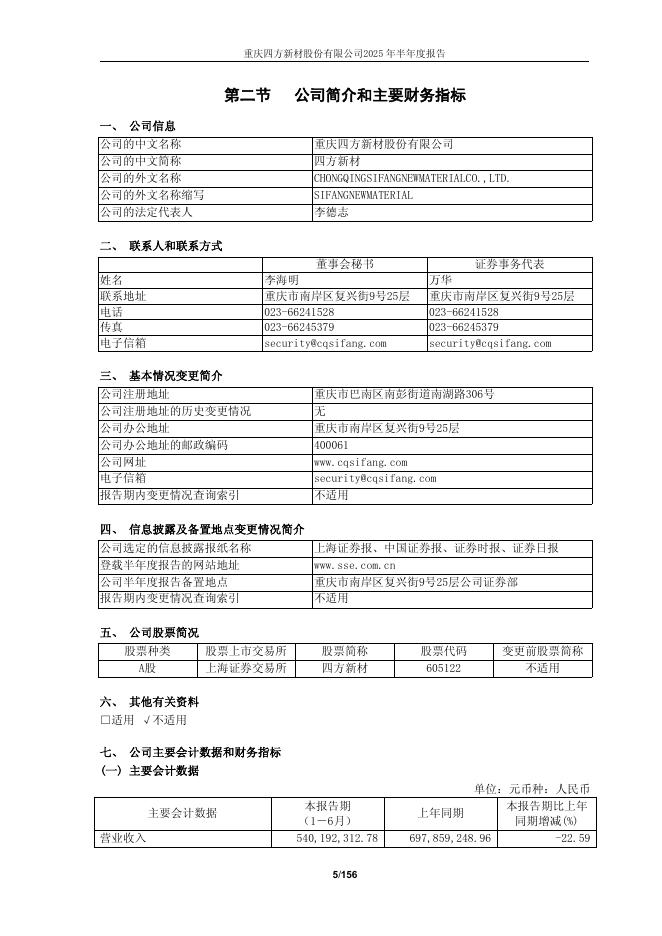 605122-四方新材:重庆四方新材股份有限公司2025年半年度报告.pdf