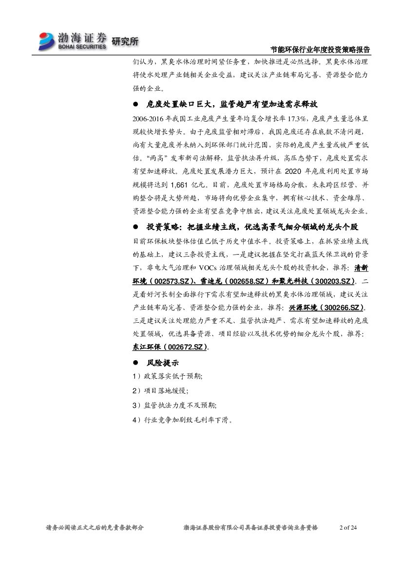 渤海证券:节能环保行业2018年年度投资策略报告:把握业绩主线,优选高景气细分领域的龙头个股.pdf