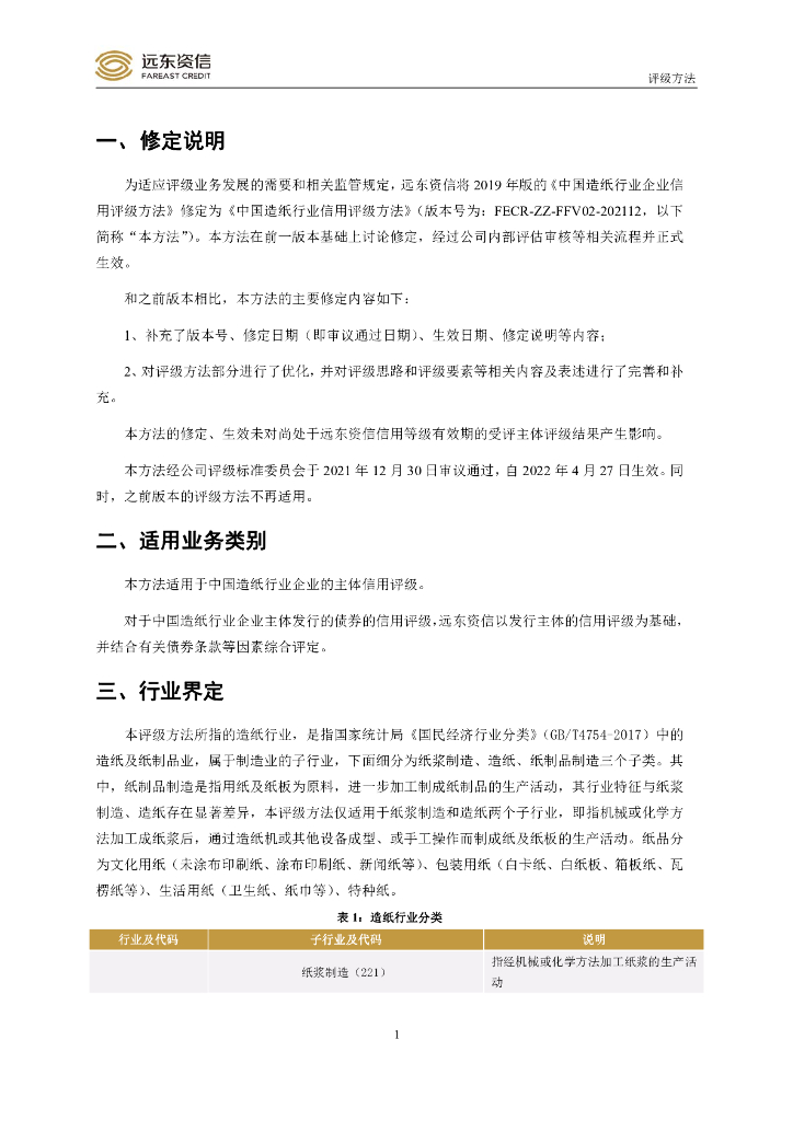 远东资信:中国造纸行业企业信用评级方法.pdf