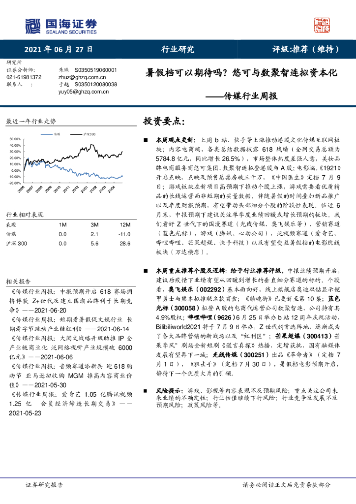 国海证券:传媒行业周报:暑假档可以期待吗?悠可与数聚智连拟资本化.pdf