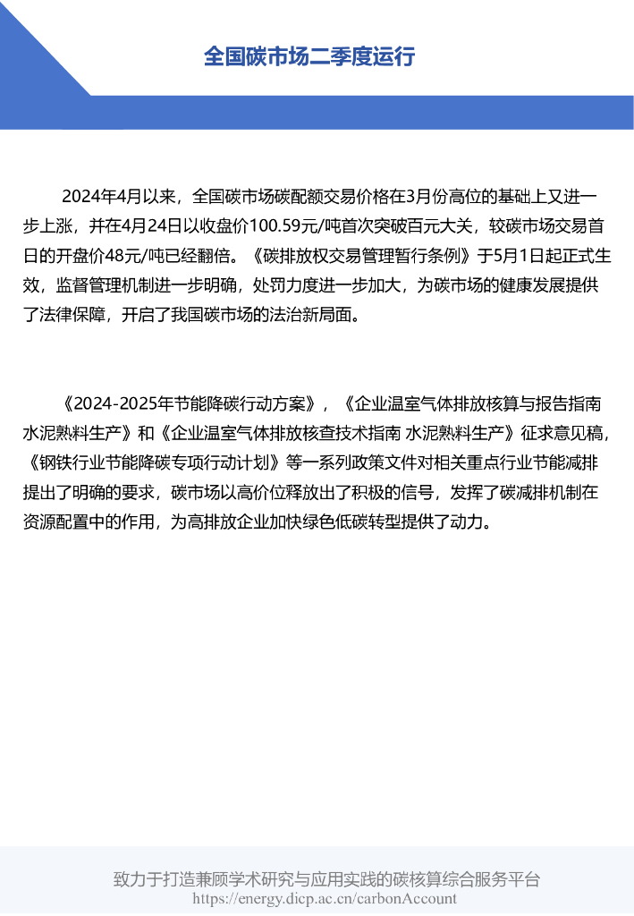 RCLCS低碳战略研究中心:2024年二季度碳交易市场运行与政策盘点报告-碳价突破百元 碳市场扩容在即.pdf
