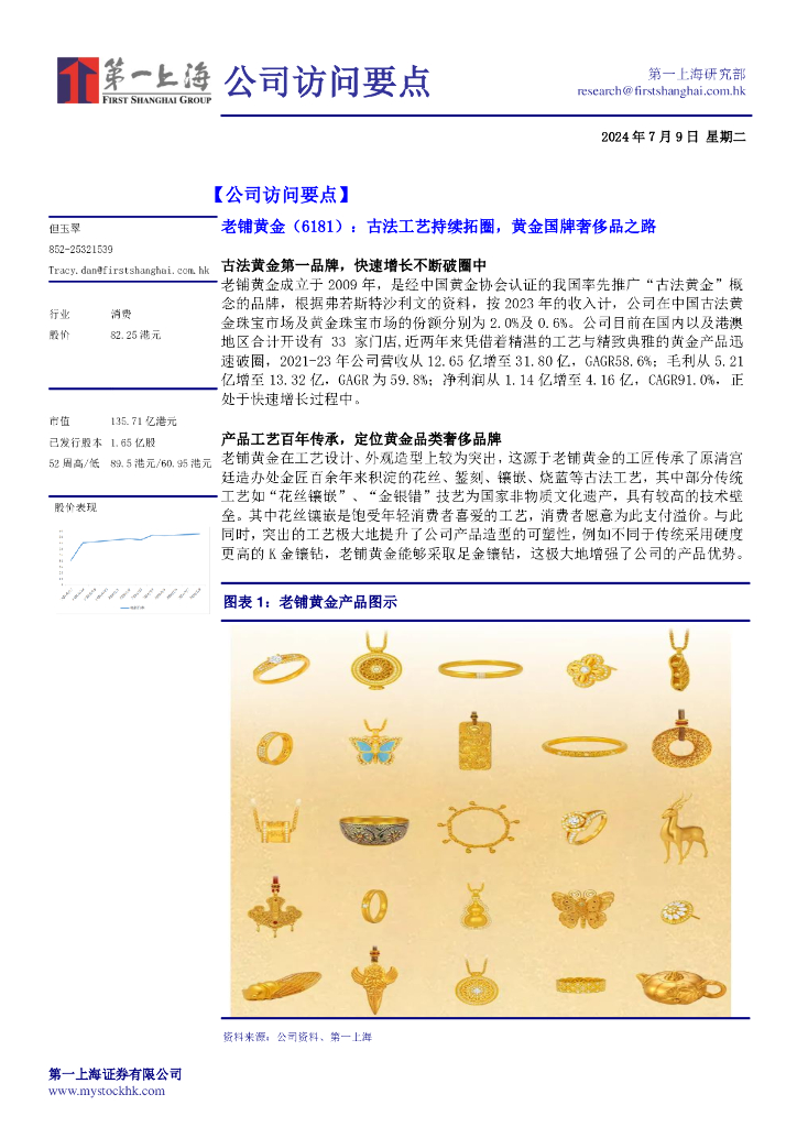 第一上海证券:老铺黄金(06181)港股公司研究报告-古法工艺持续拓圈,黄金国牌奢侈品之路.pdf