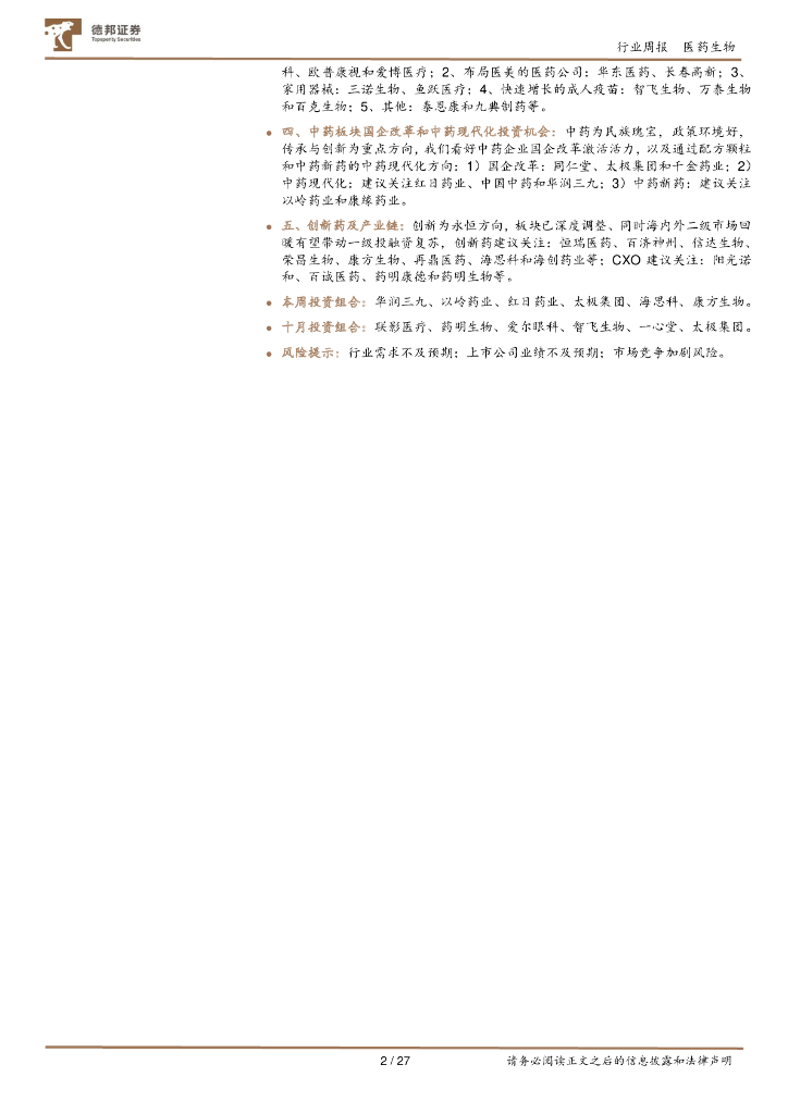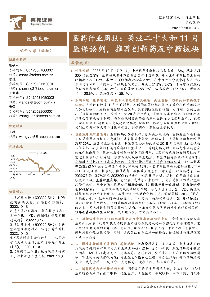 德邦证券:医药行业周报:关注二十大和11月医保谈判,推荐创新药及中药板块.pdf