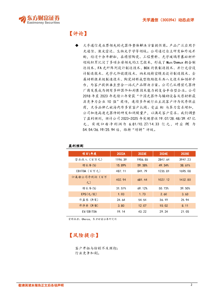 东方财富证券:天孚通信(300394)-动态点评:23年业绩预告发布,受益AI及算力需求景气高,公司高速率产品增长较快.pdf