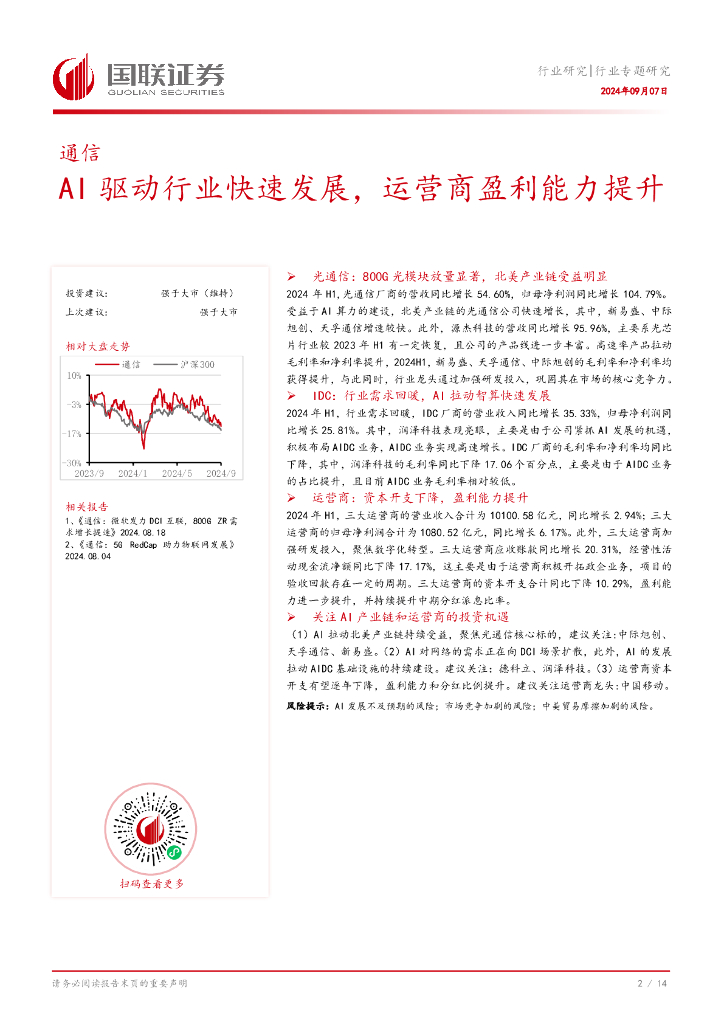 国联证券:通信行业专题研究:AI驱动行业快速发展,运营商盈利能力提升.pdf