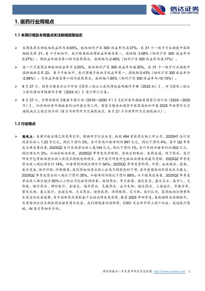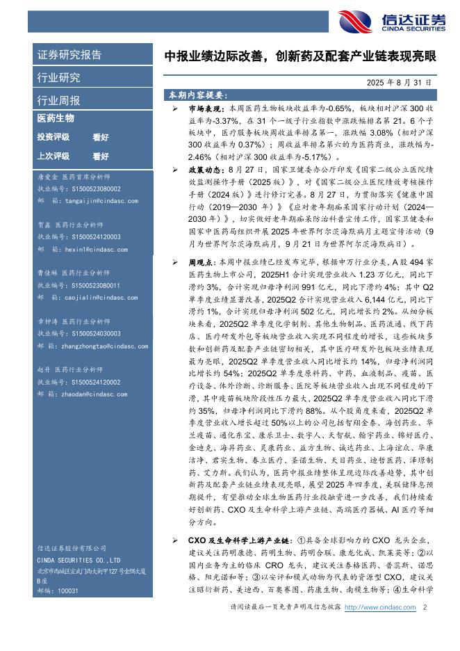 信达证券:医药生物行业周报:中报业绩边际改善,创新药及配套产业链表现亮眼.pdf