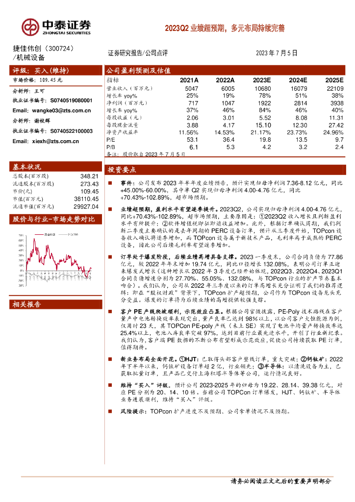 中泰证券:捷佳伟创(300724)-2023Q2业绩超预期,多元布局持续完善.pdf
