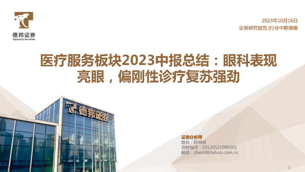 德邦证券:医疗服务板块2023中报总结:眼科表现亮眼,偏刚性诊疗复苏强劲.pdf
