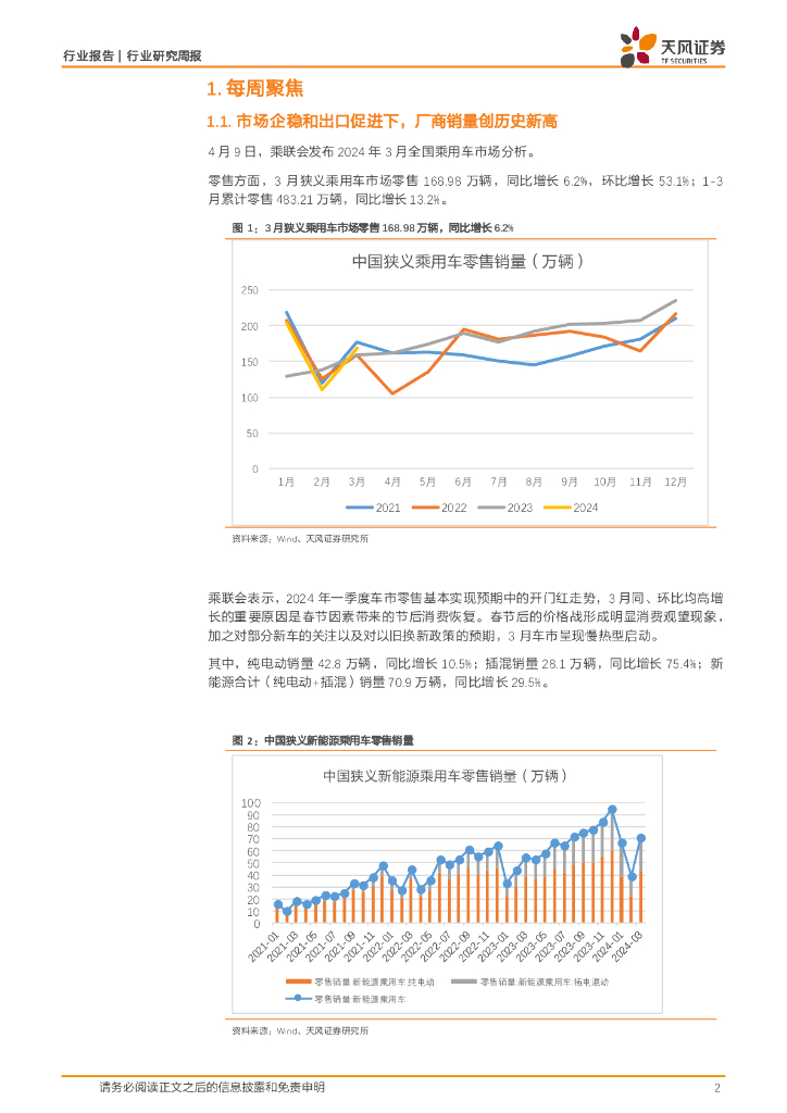 天风证券:天风汽车行业周报:市场企稳和出口促进下,3月厂商销量创历史新高.pdf