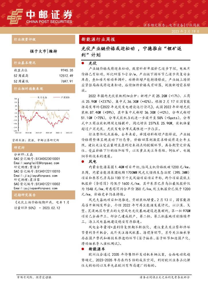 中邮证券:新能源行业周报:光伏产业链价格或迎松动,宁德推出“锂矿返利”计划.pdf
