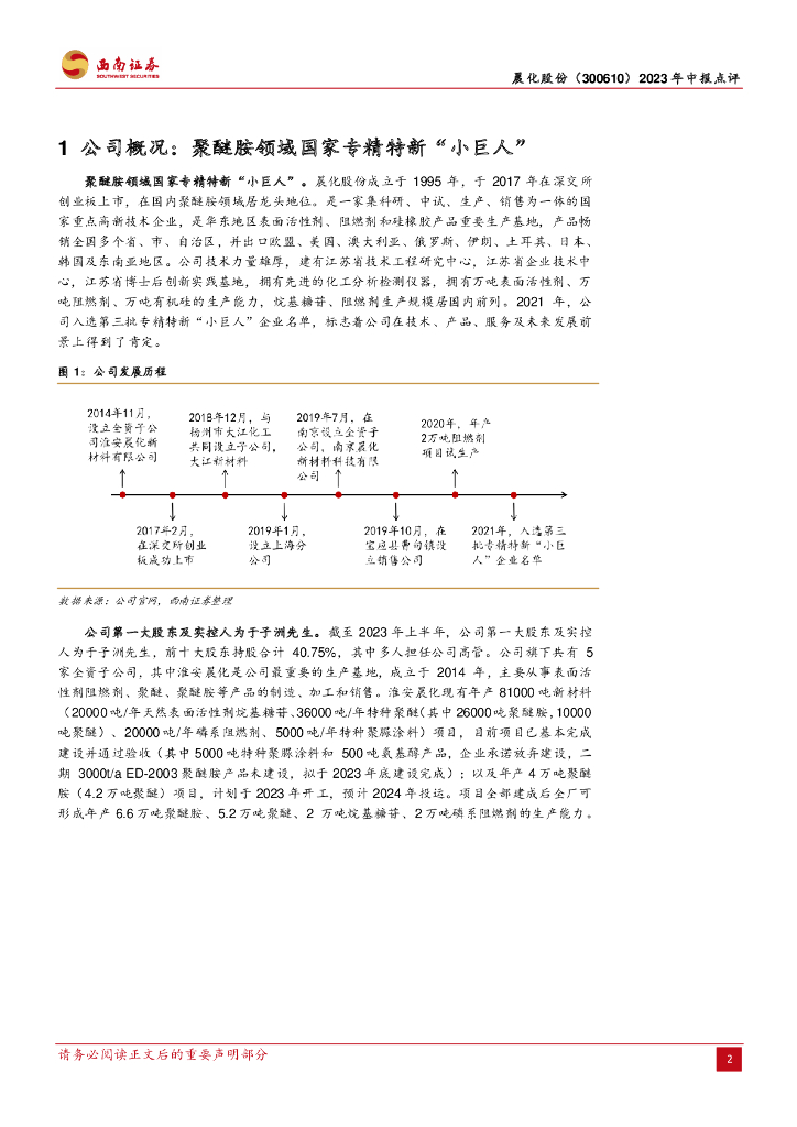 西南证券:晨化股份(300610)-短期业绩承压,产能释放未来可期.pdf