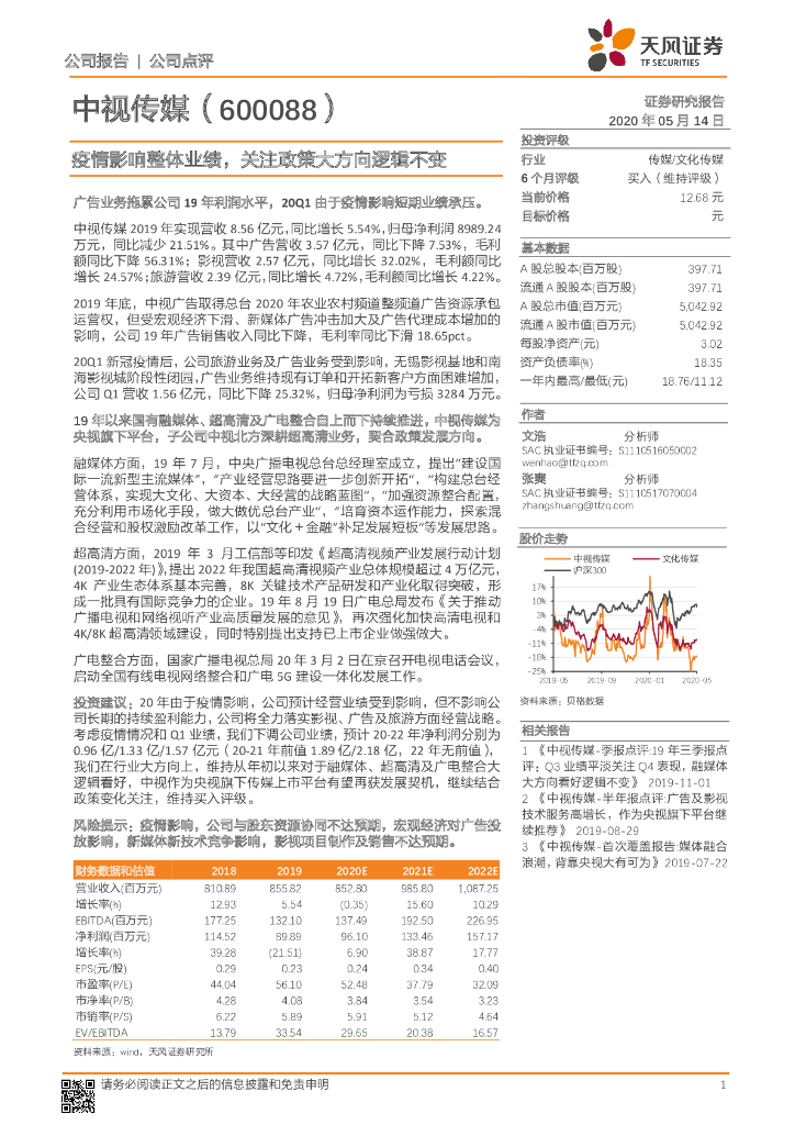 天风证券:中视传媒(600088)-疫情影响整体业绩,关注政策大方向逻辑不变.pdf