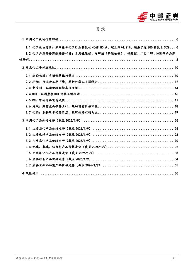 中邮证券:化工行业报告:化工板块维持景气度,锰酸锂、电解液(磷酸铁锂)、碳酸锂、二乙二醇、NCM等产品涨幅居前.pdf