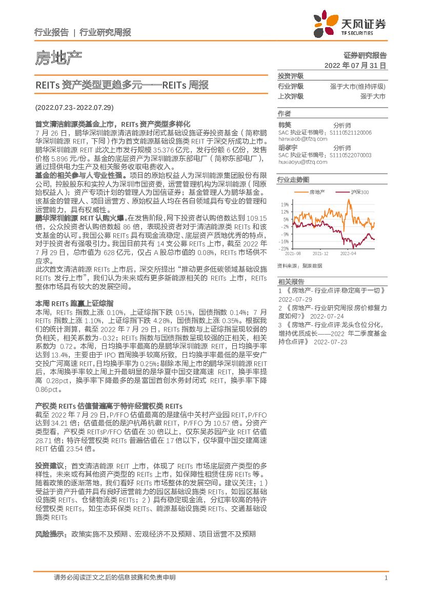天风证券:房地产行业REITs周报:REITs资产类型更趋多元.pdf