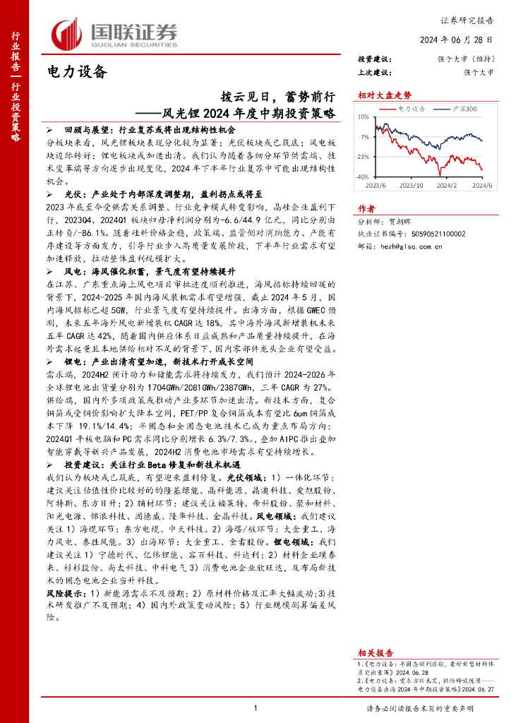 国联证券:风光锂2024年度中期投资策略:拨云见日,蓄势前行.pdf