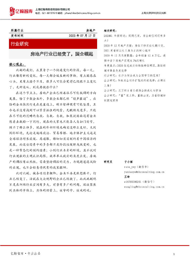 亿翰智库:房地产行业研究:房地产行业已经变了,国企崛起.pdf