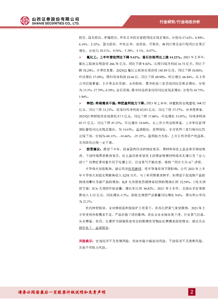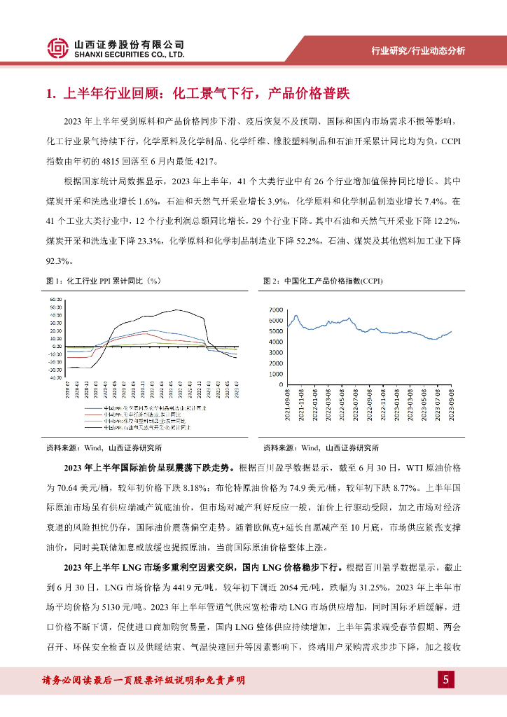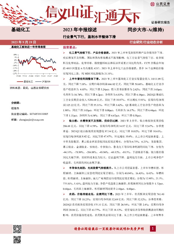 山西证券:基础化工2023年中报综述:行业景气下行,盈利水平整体下滑.pdf