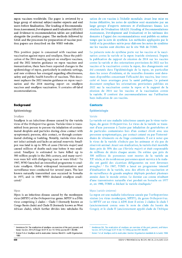 WHO世界卫生组织:2024年天花和天花病毒(正痘病毒):世卫组织立场文件(英文版).pdf