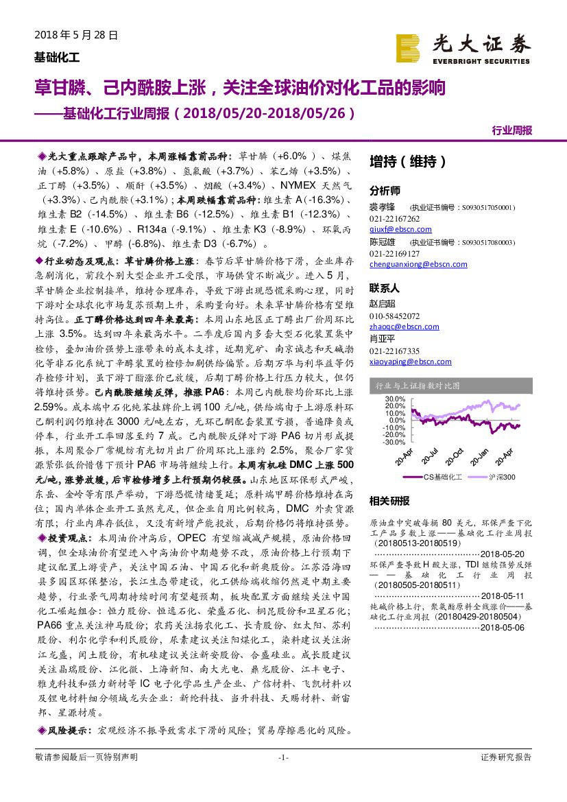 光大证券:基础化工行业周报:草甘膦、己内酰胺上涨,关注全球油价对化工品的影响.pdf