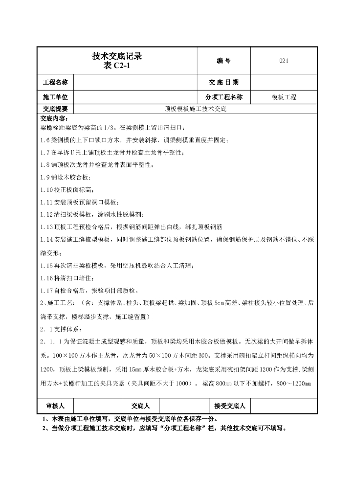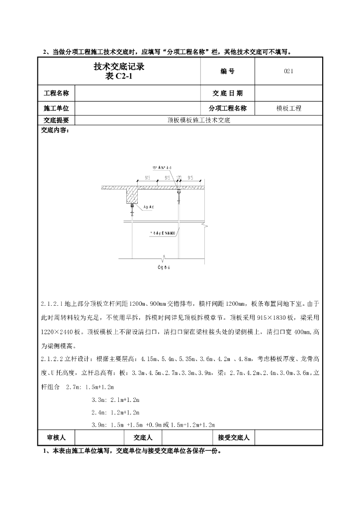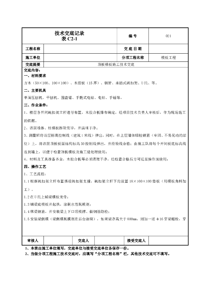 顶板模板施工技术交底2022.doc