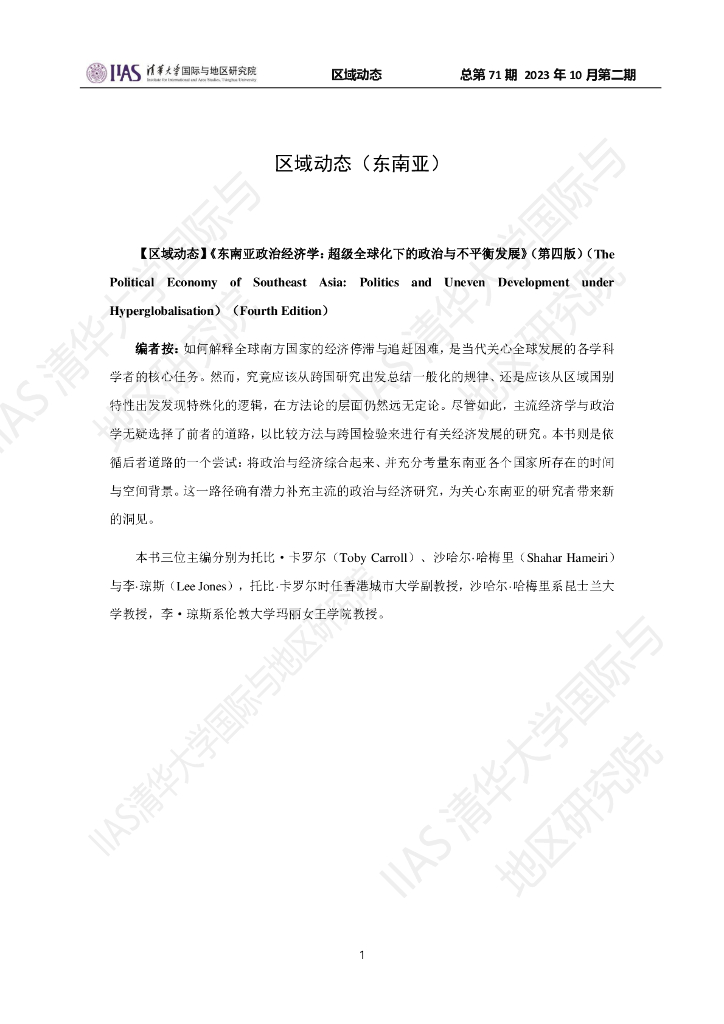 清华大学国际与地区研究院:东南亚地区《区域动态》2023年10月第二期.pdf