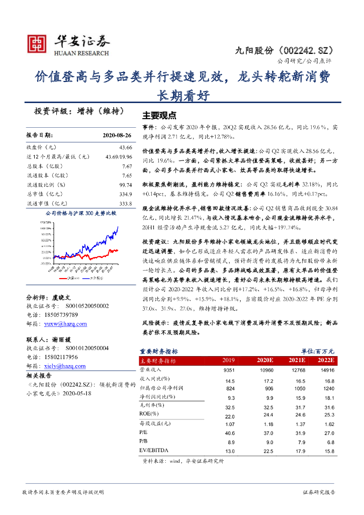 华安证券:九阳股份(002242)-价值登高与多品类并行提速见效,龙头转舵新消费长期看好.pdf