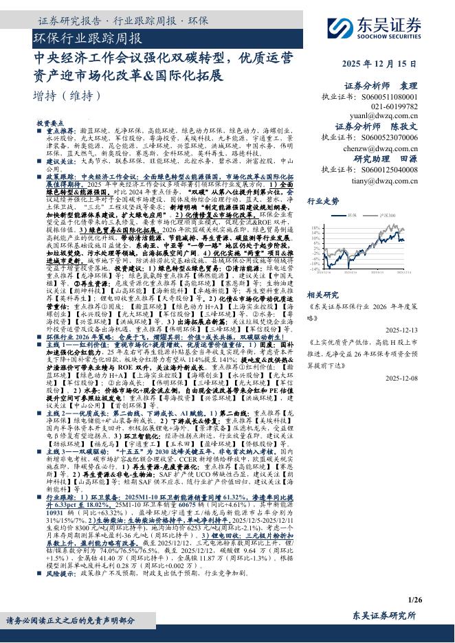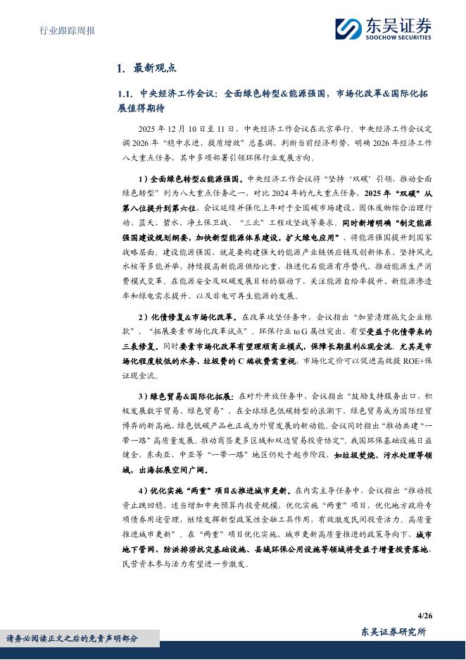 东吴证券:环保行业跟踪周报:中央经济工作会议强化双碳转型,优质运营资产迎市场化改革&国际化拓展.pdf