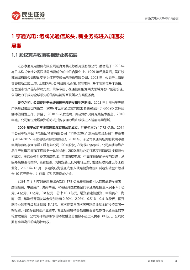 民生证券:亨通光电(600487)-公司深度报告:光通信稳步发展,海缆+电网业务具备较强成长性.pdf