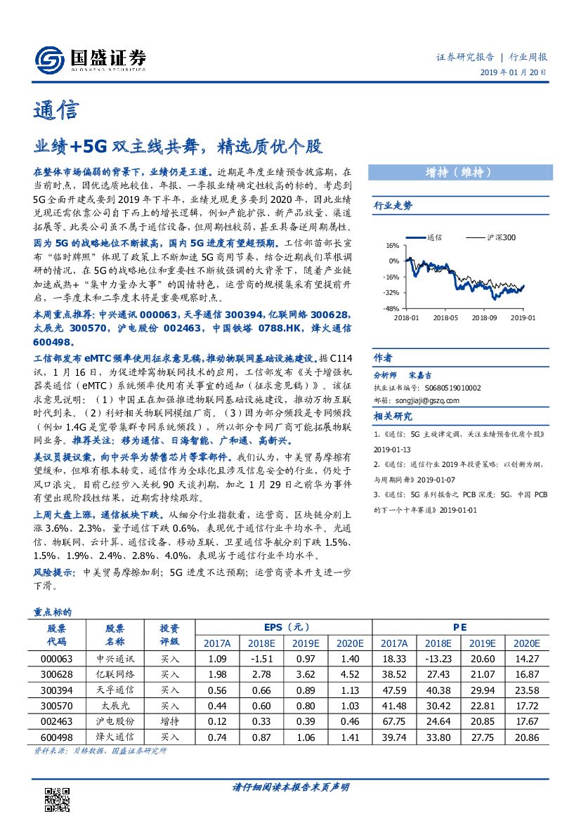 国盛证券:通信行业周报:业绩+5G双主线共舞,精选质优个股.pdf