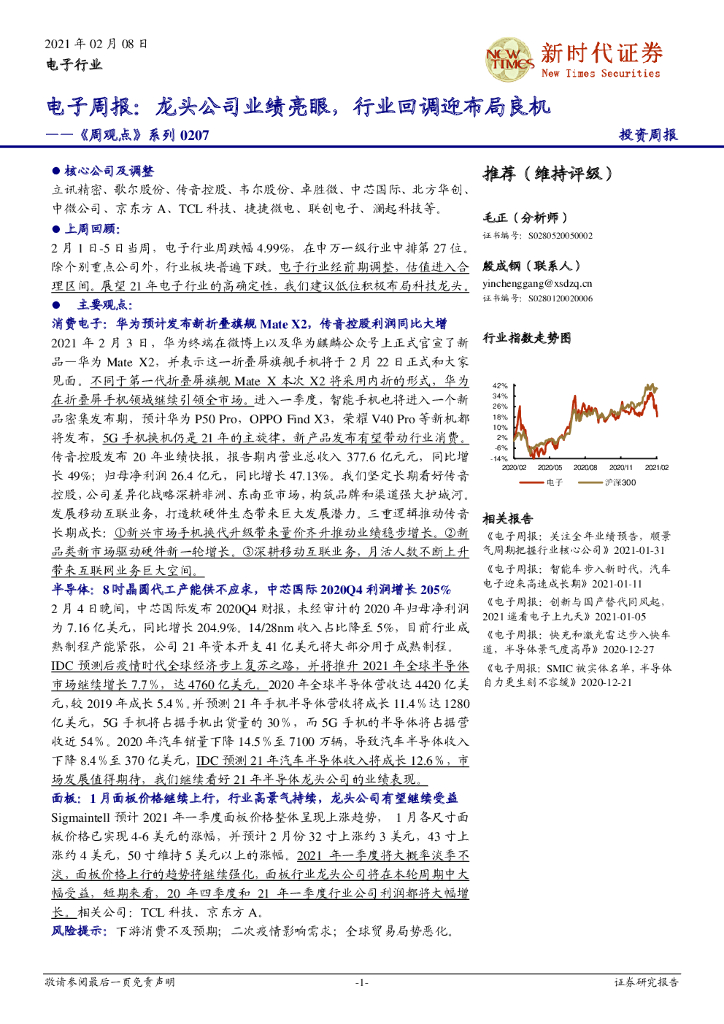 新时代证券:《周观点》系列:电子周报:龙头公司业绩亮眼,行业回调迎布局良机.pdf