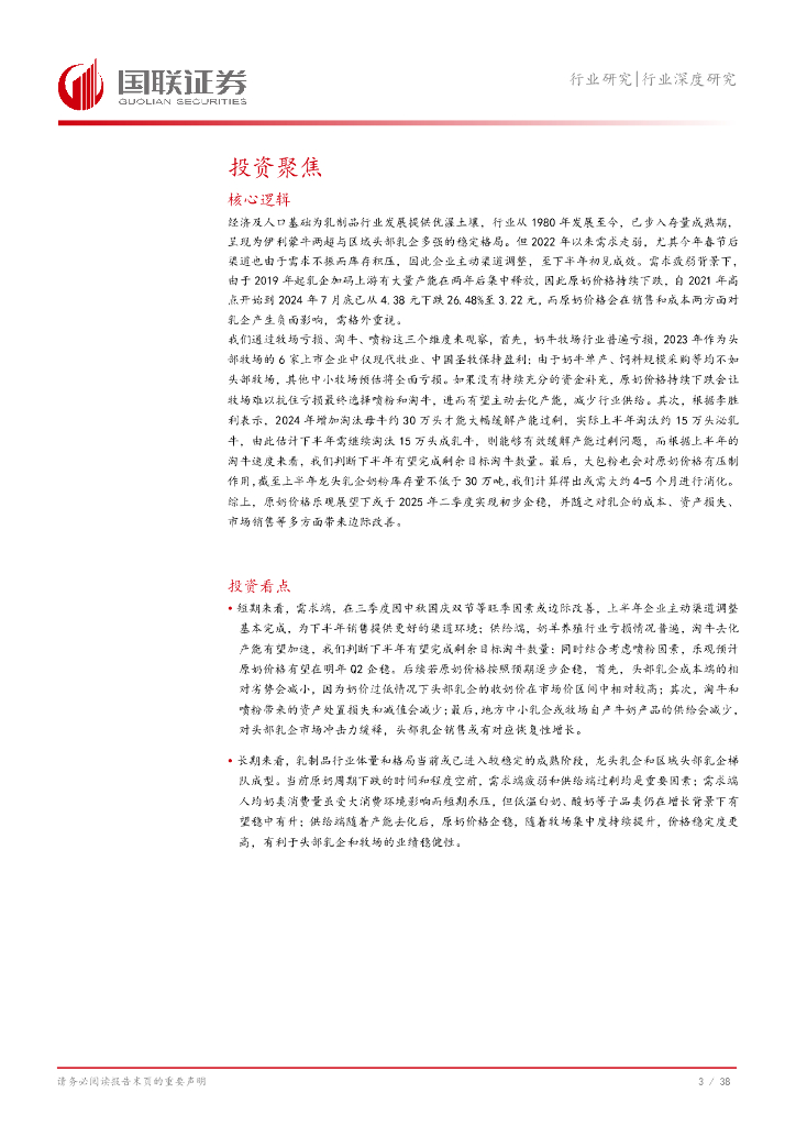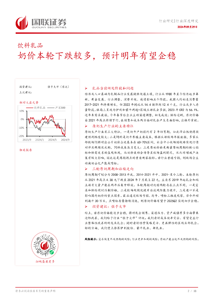 国联证券:饮料乳品行业深度研究:奶价本轮下跌较多,预计明年有望企稳.pdf