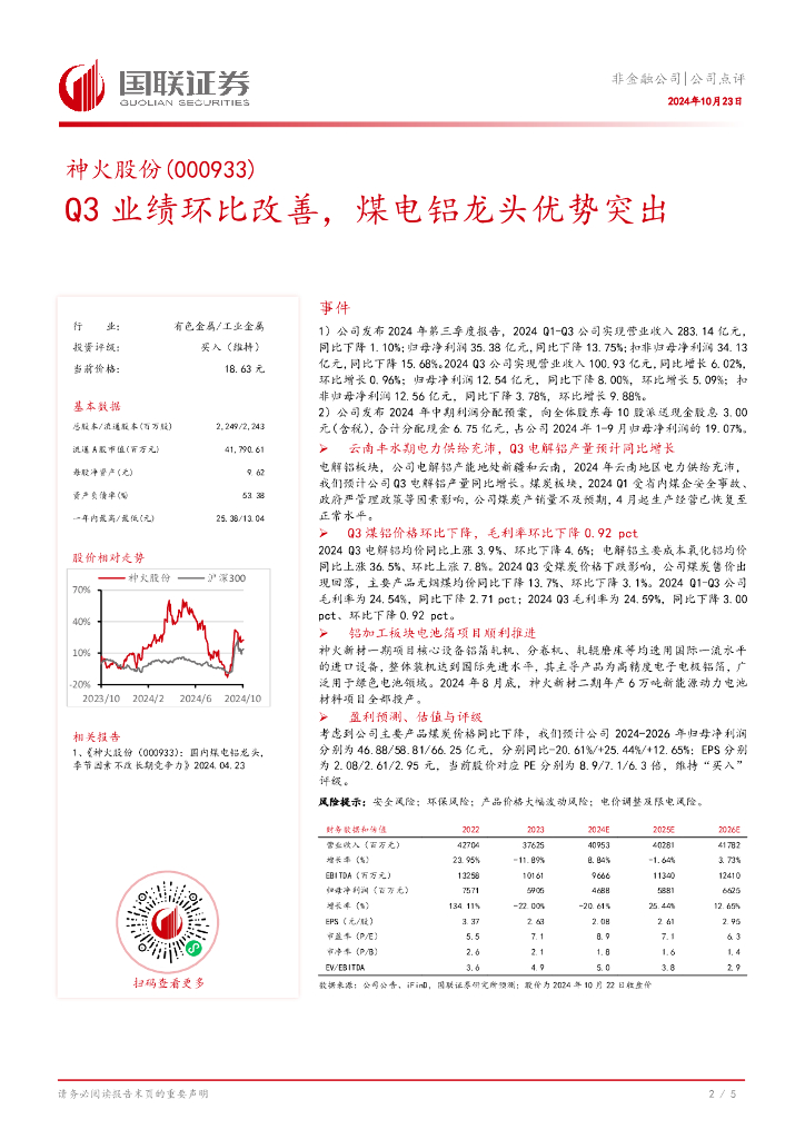 国联证券:神火股份(000933)-Q3业绩环比改善,煤电铝龙头优势突出.pdf