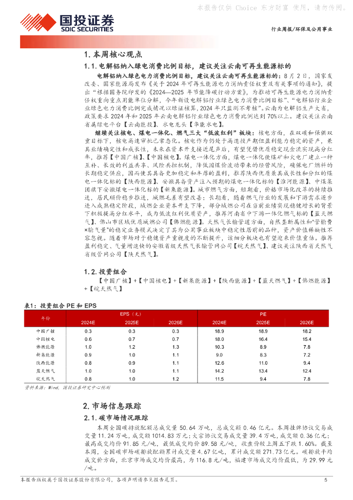 国投证券:环保及公用事业行业周报:电解铝纳入绿色电力消费比例目标,建议关注云南可再生能源标的.pdf